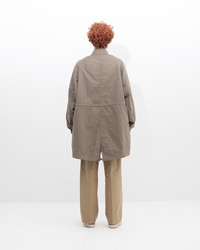 SIX-FIVE FISHTAIL PARKA COLOR: BLACK, OLIVE, KHAKI SIZE: 1, 2, 3, 4, 5 Custom Cotton Nylon Blend Fishtail Coat Natural Dyed and Damaged Finish Vintage CONMER Zip Fastener Custom Water Buffalo Buttons, Snap Buttons, and Military Tape 81% Cotton 19% Nylon UNIT:cm : Items that are finished with Natural Dye will experience different textural finishes where no two are alike. Also, there may be pieces that have mud left on the finished garment as a result of the treatment. Please be aware that there may be slight variations in the color of the fabric and pattern than shown in the images. There will be slight shrinkage when washing for the first time. SIZE LENGTH CHEST SLEEVE 1 96 138 88 2 98.5 142 90.5 3 101 146 93 4 103.5 151 95.5 5 106 156 98