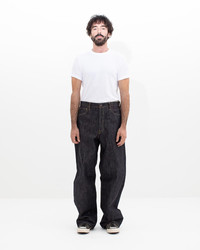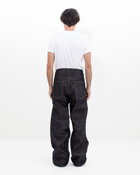 SOCIAL SCULPTURE 01 EX WD RAW COLOR: ONE COLOR SIZE: W30, W32, W34, W36, W38 Custom 13 oz. Denim Pants Non-Sanforized, Unwashed, and Unprocessed Regular Fit, Wide Leg Silhouette, High-Rise, and Button Fly Red Selvedge, Copper Buttons, and Rivets Natural Dyed Buckskin Patch Hidden Internal Zip Pocket on Back Right Patch Pocket Custom Zip Fastener 100% Cotton UNIT:cm : Please be aware that this item utilizes a fabric that does not have any shrink resistant or warp resistant finishing so the sizing for each piece may vary. When washing there will be more shrinkage than conventional denim. Please be aware that this item utilizes more indigo in the dyeing process to create a unique color. When worn in its raw state rubbing of the fabric will cause color transfer to other garments as well as onto your hands (nails). There may also be slight variations in the color of the fabric and pattern in comparison to what is shown in the images. When washing there may be slight shrinkage. SIZE LENGTH INSEAM WAIST THIGH WIDTH HEM W30/L30 113.5 82 88 36.6 25.2 W32/L30 114 82 93 37.8 26.4 W34/L30 114.5 82 98 39.1 27.7 W36/L30 115 82 103 40.3 28.9 W38/L30 115.5 82 108 41.6 30.2 W30/L32 118.5 87 88 36.6 25.2 W32/L32 119 87 93 37.8 26.4 W34/L32 119.5 87 98 39.1 27.7 W36/L32 120 87 103 40.3 28.9 W38/L32 120.5 87 108 41.6 30.2