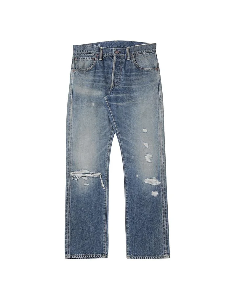 SOCIAL SCULPTURE 01 SLIM DMGD-44 COLOR: ONE COLOR SIZE: W30, W32, W34, W36, W38 Custom 14 oz. Denim Pants Damaged Finish Regular Fit, Slightly Tapered Silhouette, Medium-Rise, and Button Fly Blue Selvedge, Copper Buttons, and Rivets Natural Dyed Buckskin Patch Hidden Internal Zip Pocket on Back Right Patch Pocket Custom Zip Fastener 100% Cotton UNIT:cm : Please be aware that there may also be slight variations in the color of the fabric and pattern than shown in the images. There will be slight shrinkage when washing for the first time. SIZE LENGTH INSEAM WAIST THIGH WIDTH HEM W30/L30 104 81 82 31.3 19 W32/L30 104.5 81 87 32.5 20.2 W34/L30 105 81 92 33.8 21.5 W36/L30 105.5 81 97 35 22.7 W38/L30 106 81 102 36.3 24 W30/L32 109 86 82 31.3 19 W32/L32 109.5 86 87 32.5 20.2 W34/L32 110 86 92 33.8 21.5 W36/L32 110.5 86 97 35 22.7 W38/L32 111 86 102 36.3 24