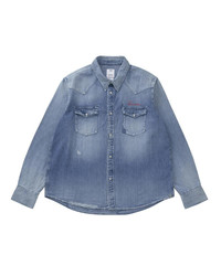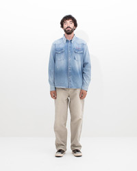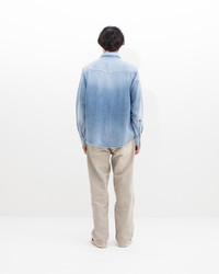 SOCIAL SCULPTURE SHIRT CRASH COLOR: ONE SIZE SIZE: 1, 2, 3, 4, 5 Custom 9 oz. Denim Shirt Crash Damaged Details Grey Selvedge American Snap Buttons "Visvim" (Front Left) Hand Embroidery Detail 100% Cotton UNIT:cm : Please be aware that there may also be slight variations in the color of the fabric and pattern than shown in the images. There will be slight shrinkage when washing for the first time. SIZE LENGTH CHEST SHOULDER SLEEVE 1 73 117 46 63.5 2 75.5 122 48 65 3 78 127 50 66.5 4 80.5 132 52 68 5 83 137 54 69.5