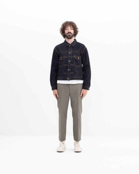 SS 101 JKT RAW MUD OVERDYE COLOR: ONE COLOR SIZE: 1, 2, 3, 4, 5 Custom 14 oz. Denim Jacket Natural Dye finish treatment Red Selvedge Zip closure side pockets Copper buttons and rivets Natural dyed buckskin patch Please Note : 100% COTTON SIZE 1 : LENGTH 57 , CHEST 99.5 , SHOULDER 46.5 , SLEEVE 59.3 (cm) SIZE 2 : LENGTH 59.5 , CHEST 104.5 , SHOULDER 48.5 , SLEEVE 60.8 (cm) SIZE 3 : LENGTH 62, CHEST 109.5 , SHOULDER 50.5 , SLEEVE 62.3 (cm) SIZE 4 : LENGTH 64.5 , CHEST 114.5 , SHOULDER 52.5 , SLEEVE 63.8 (cm) SIZE 5 : LENGTH 67 , CHEST 119.5 , SHOULDER 54.5 , SLEEVE 65.3 (cm) Please be aware that this item utilizes more indigo in the dyeing process to create a unique color. When worn in its raw state rubbing of the fabric will cause color transfer to other garments as well as onto your hands (nails). There may also be slight variations in the color of the fabric and pattern than shown in the images. Items that are finished with Natural Dye will experience different textural finishes where no two are alike. Also, there may be denim jackets that have mud left on the finished garment as a result of the treatment. There will be slight shrinkage when washing for the first time.