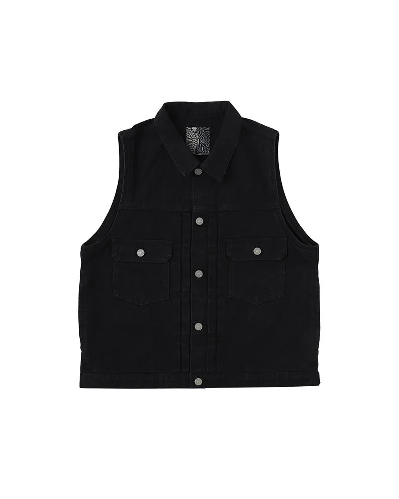 SS 101 VEST CMYK DMGD COLOR: ONE COLOR SIZE: 1, 2, 3, 4, 5 Original 14oz denim jacket Damaged finish Custom black selvedge outseam Side pocket zippers Original buttons, sliders, rivets Natural-dyed deer leather patch Please Note : 100% Cotton SIZE 1 : Length 59.7 , Shoulder 36 , Chest 109.6 (cm) SIZE 2 : Length 61.2 , Shoulder 37.5 , Chest 113.6 (cm) SIZE 3 : Length 62.7 , Shoulder 39 , Chest 117.6 (cm) SIZE 4 : Length 64.7 , Shoulder 41 , Chest 122.6 (cm) SIZE 5 : Length 66.7 , Shoulder 43 , Chest 127.6 (cm) Please be aware that the fabric used may vary in color and pattern from item to item. the product may shrink slightly when washed.