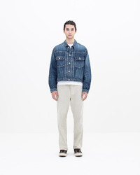 SS 101X JKT DMGD-1010 COLOR: ONE COLOR SIZE: 1, 2, 3, 4, 5 Custom 13 oz. Denim Jacket with Blue Selvedge Detail Damaged Finish Custom Zip Fastener, Iron Buttons and Rivets, and Zip Closure Side Pockets Natural Dyed Buckskin Patch 100% Cotton Made in Japan UNIT:cm : SIZE LENGTH CHEST SHOULDER SLEEVE 1 58.5 114 49.6 60.7 2 60.5 119 51.6 62.2 3 62.5 124 53.6 63.7 4 64.5 129 55.6 65.2 5 66.5 134 57.6 66.7