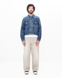SS 101X JKT DMGD-1010 COLOR: ONE COLOR SIZE: 1, 2, 3, 4, 5 Custom 13 oz. Denim Jacket Damaged Finish Blue Selvedge Iron Buttons, Rivets, and Zip Closure Side Pockets Custom Zip Fastener Natural Dyed Buckskin Patch 100% Cotton UNIT:cm : Please be aware that there may also be slight variations in the color of the fabric and pattern than shown in the images. There will be slight shrinkage when washing for the first time. SIZE LENGTH CHEST SHOULDER SLEEVE 1 58.5 114 49.6 60.7 2 60.5 119 51.6 62.2 3 62.5 124 53.6 63.7 4 64.5 129 55.6 65.2 5 66.5 134 57.6 66.7