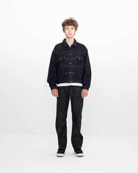SS 101XX JKT MUD OD COLOR: ONE COLOR SIZE: 1, 2, 3, 4, 5 Custom 13 oz. Denim Jacket Natural Dye finish treatment Red Selvedge Zip closure side pockets Custom zip fastener / Copper buttons and rivets Natural Dyed Buckskin patch 100% COTTON UNIT:cm : Please be aware that this item utilizes more indigo in the dyeing process to create a unique color. When worn in its raw state rubbing of the fabric will cause color transfer to other garments as well as onto your hands (nails). There may also be slight variations in the color of the fabric and pattern than shown in the images. Items that are finished with Natural Dye will experience different textural finishes where no two are alike. Also, there may be denim jackets that have mud left on the finished garment as a result of the treatment. There will be slight shrinkage when washing for the first time. SIZE LENGTH CHEST SHOULDER SLEEVE 1 63 116.5 53.6 58.2 2 65.5 121.5 55.6 59.7 3 68 126.5 57.6 61.2 4 70.5 131.5 59.6 62.7 5 73 136.5 61.6 64.2
