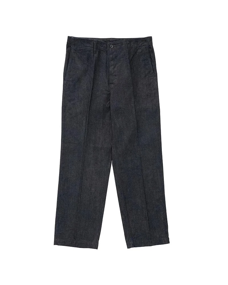 SS FIELD CHINO MUD OD COLOR: BLACK, INDIGO SIZE: 1, 2, 3, 4, 5 Custom 12 oz. Denim Pants Natural Dyed Finish Treatment Straight Silhouette Full-Length High-Rise Red Selvedge Custom Water Buffalo Buttons 100% COTTON UNIT:cm Please be aware that there may also be slight variations in the color of the fabric and pattern than shown in the images. There will be slight shrinkage when washing for the first time. SIZE LENGTH INSEAM WAIST THIGH WIDTH HEM 1 99 69.5 80 32 20.8 2 101.5 71.5 85 33.2 22 3 104 73.5 90 34.4 23.2 4 106.5 75.5 95 35.6 24.4 5 109 77.5 100 36.8 25.6