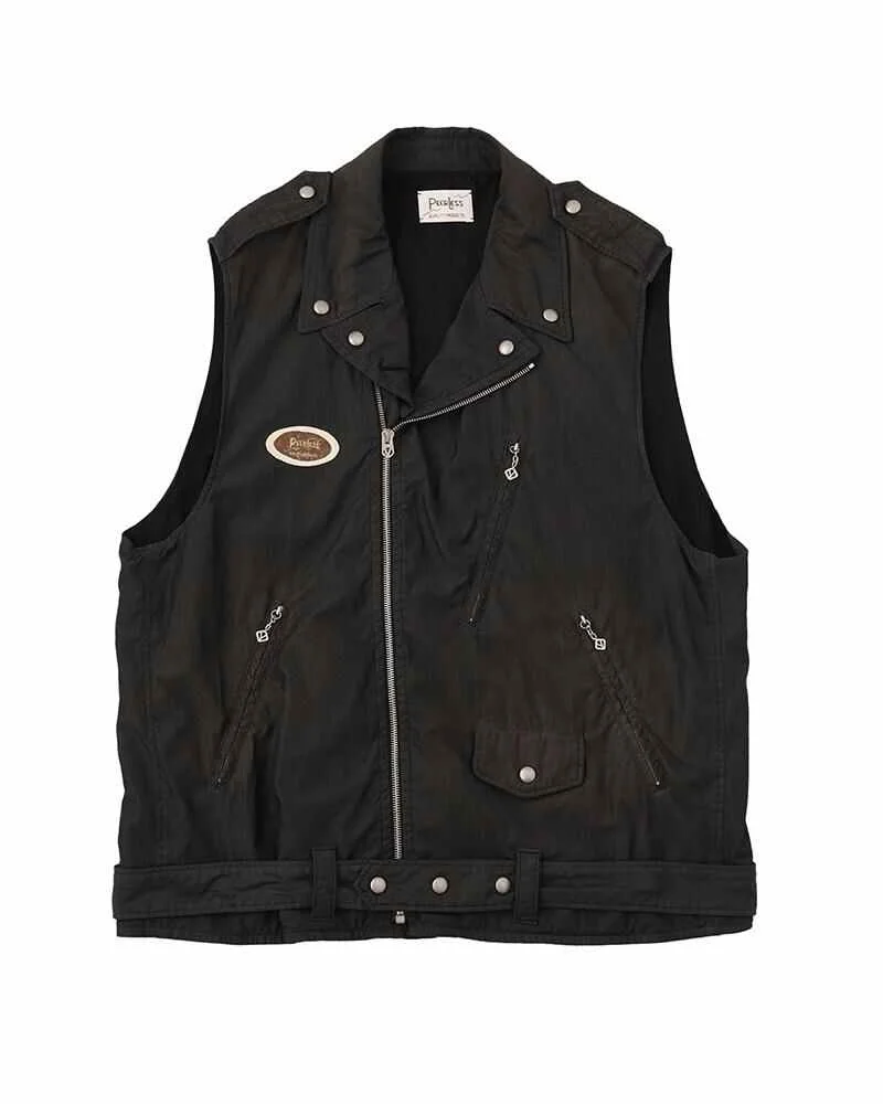 STRABLER LIGHT VEST COLOR : BLACK , BLUE , ORANGE SIZE : 1 , 2 , 3 , 4 , 5 Riders vest made from specially processed nylon and cotton blend fabric Natural dyed, garment dyed Damage processed Leather patch detail Original snap buttons Swiss riri® zippers Please Note : 81% Nylon , 19% Cotton SIZE 1 : Length 25.4 , Shoulder 16.2 , Chest 44.6 (inch) SIZE 2 : Length 26 , Shoulder 16.8 , Chest 46.2 (inch) SIZE 3 : Length 26.6 , Shoulder 17.4 , Chest 47.8 (inch) SIZE 4 : Length 27.4 , Shoulder 18.2 , Chest 49.7 (inch) SIZE 5 : Length 28.2 , Shoulder 19 , Chest 51.7 (inch) Due to the use of natural dyes, the outward appearance of items may vary slightly from one another. For certain items, mud may be applied for an added effect. The fabric used may vary in color and pattern from item to item. Products may shrink slightly when washed.
