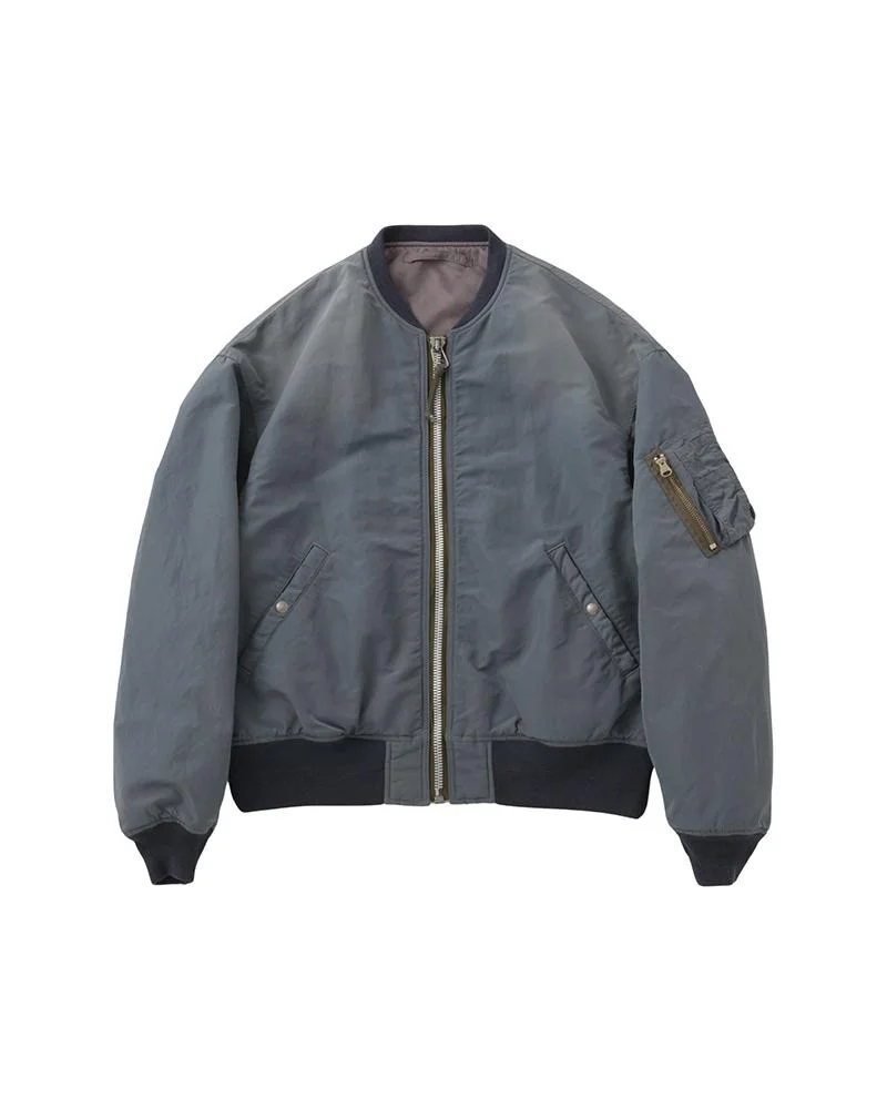 THORSON JKT COLOR: BLUE, OLIVE, BEIGE SIZE: 1, 2, 3, 4, 5 Custom High Density Weave Army Twill Nylon Jacket Garment Dyed and Natural Dyed Finish Wool Pile Fill Vintage CONMER Zip Fastener Custom Ribbing, Snap Buttons, and Zip Fastener 100% Nylon UNIT:cm : Items that are finished with Natural Dye will experience different textural finishes where no two are alike. Also, there may be pieces that have mud left on the finished garment as a result of the treatment. Please be aware that there may be slight variations in the color of the fabric and pattern than shown in the images. There will be slight shrinkage when washing for the first time. SIZE LENGTH CHEST SHOULDER SLEEVE 1 65.5 117 61 60 2 67.5 121 62.5 61.5 3 69.5 125 64 63 4 71.5 130 66 64.5 5 73.5 135 68 66