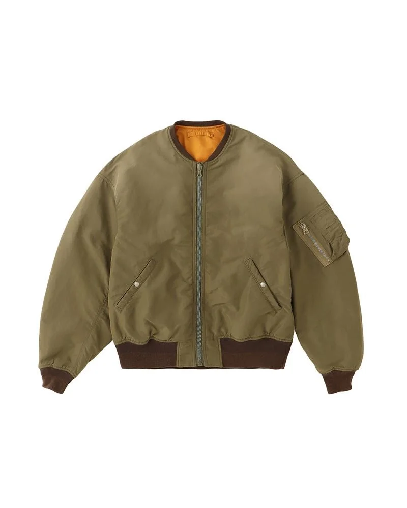 THORSON JKT COLOR: NAVY, OLIVE, LT.GREEN SIZE: 1, 2, 3, 4, 5 A Jacket made from a densely woven Nylon army fabric Damaged Finish Natural Dye finish treatment Wool Pile Fill Vintage "CROWN" zipper Vintage "TALON" zipper Custom Snap Buttons Reversible Style 100% NYLON UNIT:cm Please be aware that there may be slight variations in the color of the fabric and pattern than shown in the images. There will be slight shrinkage when washing for the first time.