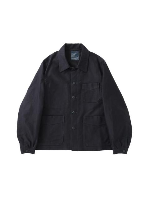TRAVAIL COVERALL MOLESKIN COLOR: BLACK, NAVY, GREY SIZE: 1, 2, 3, 4, 5 A Coverall Jacket made with a woven extra long staple cotton moleskin material Pressed Finish Custom Water Buffalo Buttons 100% COTTON UNIT:cm : Items that are finished with Natural Dye will experience different textural finishes where no two are alike. Also, there may be pieces that have mud left on the finished garment as a result of the treatment. Please be aware that there may also be slight variations in the color of the fabric and pattern than shown in the images. There will be slight shrinkage when washing for the first time. SIZE LENGTH CHEST SHOULDER SLEEVE 1 69.5 115 50.2 61.9 2 71.5 119 51.7 63.4 3 73.5 123 53.2 64.9 4 75.5 128 55.2 66.4 5 77.5 133 57.2 67.9