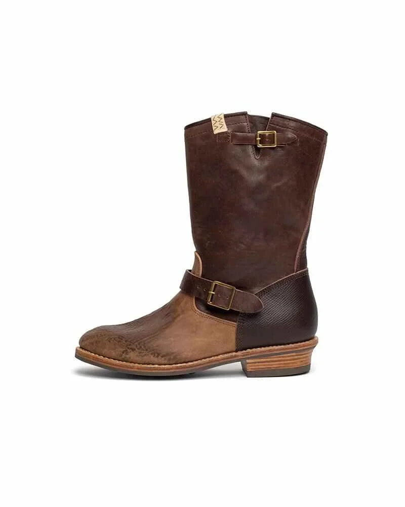 T.W.O. BOOTS-FOLK COLOR: BLACK, DK.BROWN, BROWN SIZE: M8, M8.5, M9, M9.5, M10, M10.5, M11, M12 UPPER : Italian Vegetable Tanned Horsehide combined with American Vegetable Tanned Cowhide OUTSOLE : Dainite Outsole Replaceable Outsole Hand-Sewn Goodyear Welt Construction Pigment free leather lining Cork Insole for enhanced cushioning and moisture absorption Leather Welt Leather Midsole The sizing and fit can vary depending on the style of shoe and its design along with the material used for its construction. Please be aware that the natural leather hides have been specially treated to create a unique texture which creates wrinkles and variation in size, expression, and hue where no two pieces are alike. Please be aware that there may be slight variations in color or pattern from the images shown due to the nature of the leather being used.