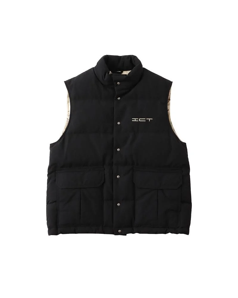 ULMER DOWN VEST COLOR: BLACK, LT.GREEN, KHAKI SIZE: 1, 2, 3, 4, 5 A down vest made with a woven wool linen tropical fabric. Native American print lining Pressed Finish White Goose Down Fill Custom Snap Buttons “ICT” embroidered detail 76% WOOL 24% LINEN UNIT:cm : Items that are finished with Natural Dye will experience different textural finishes where no two are alike. Also, there may be pieces that have mud left on the finished garment as a result of the treatment. Please be aware that there may also be slight variations in the color of the fabric and pattern than shown in the images. There will be slight shrinkage when washing for the first time. SIZE LENGTH CHEST SHOULDER 1 68 115.4 48 2 69.5 119.4 49.5 3 71 123.4 51 4 73 128.4 53 5 75 133.4 55