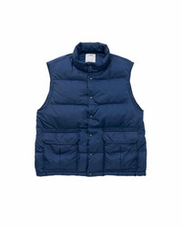 ULMER DOWN VEST COLOR: BLUE, GREEN, ORANGE, MUSTARD SIZE: 1, 2, 3, 4, 5 A Down Vest made from a woven Nylon twill fabric Damaged Finish Natural Dye Finish White Goose Down Fill Custom Snap Buttons 100% NYLON UNIT:cm Items that are finished with Natural Dye will experience different textural finishes where no two are alike. Also, there may be pieces that have mud left on the finished garment as a result of the treatment. Please be aware that there may also be slight variations in the color of the fabric and pattern than shown in the images. There will be slight shrinkage when washing for the first time. SIZE LENGTH CHEST SHOULDER 1 68 115.4 48 2 69.5 119.4 49.5 3 71 123.4 51 4 73 128.4 53 5 75 133.4 55
