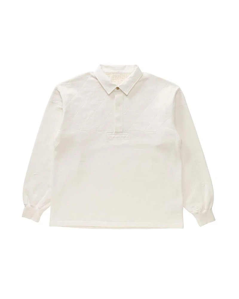 VANDERFIELD SHIRT L/S CRASH COLOR: BLACK, NAVY, OFF WHITE SIZE: 1, 2, 3, 4, 5 Long Sleeve Rugby Shirt Garment Dyed and Crash Damaged Finish Custom Water Buffalo Buttons 100% Cotton UNIT:cm : Please be aware that there may be slight variations in the color of the fabric and pattern than shown in the images. There will be slight shrinkage when washing for the first time. SIZE LENGTH CHEST SHOULDER SLEEVE 1 68.5 116 55 58.8 2 71 121 57 60.3 3 73.5 126 59 61.8 4 76 131 61 63.3 5 78.5 136 63 64.8