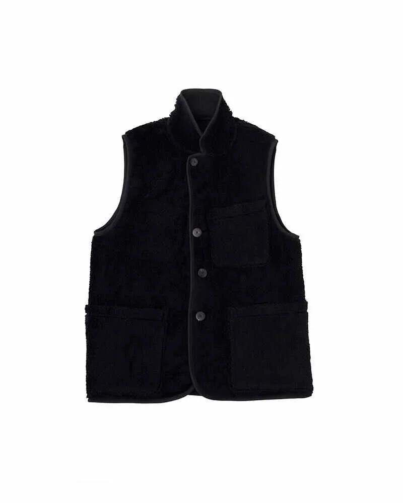 VS GILET BOA (SUPERFINE) COLOR: BLACK, NAVY, GREY SIZE: 1, 2, 3, 4, 5 Boa-fleece vest made from extra-fine wool 17.5 micron wool Original water buffalo horn buttons Original sliders Please Note : 100% Wool SIZE 1 : Length 25.7 , Shoulder 15 , Chest 39.6 (inch) SIZE 2 : Length 26.2 , Shoulder 15.6 , Chest 41.2 (inch) SIZE 3 : Length 26.8 , Shoulder 16.2 , Chest 42.7 (inch) SIZE 4 : Length 27.6 , Shoulder 17 , Chest 44.7 (inch) SIZE 5 : Length 28.4 , Shoulder 17.8 , Chest 46.7 (inch) Please be aware that the fabric used may vary in color and pattern from item to item. Products may shrink slightly when washed.