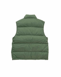 ULMER DOWN VEST COLOR: BLUE, GREEN, ORANGE, MUSTARD SIZE: 1, 2, 3, 4, 5 A Down Vest made from a woven Nylon twill fabric Damaged Finish Natural Dye Finish White Goose Down Fill Custom Snap Buttons 100% NYLON UNIT:cm : Items that are finished with Natural Dye will experience different textural finishes where no two are alike. Also, there may be pieces that have mud left on the finished garment as a result of the treatment. Please be aware that there may also be slight variations in the color of the fabric and pattern than shown in the images. There will be slight shrinkage when washing for the first time. SIZE LENGTH CHEST SHOULDER 1 68 115.4 48 2 69.5 119.4 49.5 3 71 123.4 51 4 73 128.4 53 5 75 133.4 55