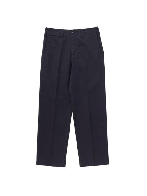 WIDE CHINO PANTS COLOR: NAVY, BEIGE, LT.GREEN SIZE: 1, 2, 3, 4, 5 Custom High Density Weave Long Staple Cotton Chino Pants One Wash Straight Leg Silhouette and High-Rise Custom Water Buffalo Buttons 100% Cotton UNIT:cm Please be aware that there may be slight variations in the color of the fabric and pattern than shown in the images. There will be slight shrinkage when washing for the first time. SIZE LENGTH INSEAM WAIST THIGH WIDTH HEM 1 105.5 73.5 76 31.8 21.1 2 108 75.5 81 33 22.3 3 110.5 77.5 86 34.2 23.5 4 113 79.5 91 35.4 24.7 5 115.5 81.5 96 36.6 25.9