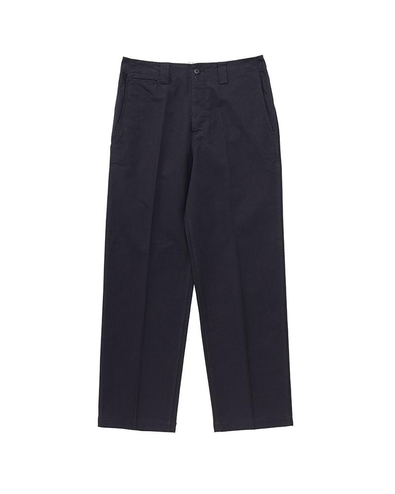 WIDE CHINO PANTS COLOR: NAVY, BEIGE, LT.GREEN SIZE: 1, 2, 3, 4, 5 Custom High Density Weave Long Staple Cotton Chino Pants One Wash Straight Leg Silhouette and High-Rise Custom Water Buffalo Buttons 100% Cotton UNIT:cm Please be aware that there may be slight variations in the color of the fabric and pattern than shown in the images. There will be slight shrinkage when washing for the first time. SIZE LENGTH INSEAM WAIST THIGH WIDTH HEM 1 105.5 73.5 76 31.8 21.1 2 108 75.5 81 33 22.3 3 110.5 77.5 86 34.2 23.5 4 113 79.5 91 35.4 24.7 5 115.5 81.5 96 36.6 25.9