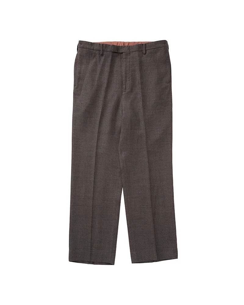 WIDE SLACKS COLOR: BLACK, GREY SIZE: 1, 2, 3, 4, 5 Custom Wool Linen Blend Pants Pressed Finish Custom Water Buffalo Buttons and Zip Fastener 74% Wool 26% Linen UNIT:cm : Please be aware that there may be slight variations in the color of the fabric and pattern than shown in the images. There will be slight shrinkage when washing for the first time. SIZE LENGTH INSEAM WAIST THIGH WIDTH HEM 1 101.5 69.1 83 33.1 21 2 104 71.1 88 34.3 22.2 3 106.5 73.1 93 35.6 23.5 4 109 75.1 98 36.8 24.7 5 111.5 77.1 103 38.1 26