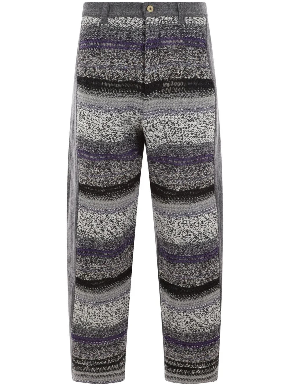needle-punched contrast panel trousers Highlights - Grey - Cotton-wool blend - Applique logo - Contrasting panel detail - Belt loops - Front button fastening - Two diagonal pockets to the sides - Rear patch pocket - Straight leg Made In Italy Composition Cotton 35%, Wool 25%, Polyester 20%, Acrylic 20%