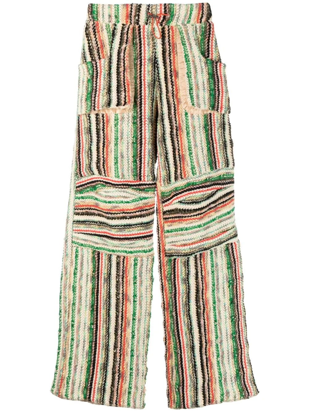 stripe-print cotton-blend trousers Highlights - Emerald green/multicolour - Wool-cotton-linen blend - Stripe print - Elasticated drawstring waistband - Two side inset pockets - Rear patch pocket Made in Italy Composition Cotton 50%, Wool 30%, Linen/Flax 10%, Acrylic 5%, Polyamide 3%, Elastane 2% SIZE & FIT Model measurements Height 6 ft 2 in(1.88 m) Bust/Chest 36.61 in(93 cm) Hips 37.79 in(96 cm) Waist 28.74 in(73 cm) FittingInformation Designed with a wide leg, offering a loose and roomy fit Adjust this piece’s waistband to your preference using the drawstring Made from a midweight non-stretch fabric This piece fits true to size – take your usual size