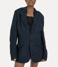 The silhouette of the linen Two Button Crewe jacket revives the archival Vivienne Westwood 'crewe' pattern cutting system, creating a rippled, gathered finish to enhance the worn and wrinkled fabric. With resin-coated buttons, the unlined jacket is detailed with two front flap pockets. Code: 34010008-W00SI--NAVY - Long sleeves - Straight hem - Chest pocket - Unisex - Made in Italy - Models wear a size S and M COMPOSITION - 100% Linen
