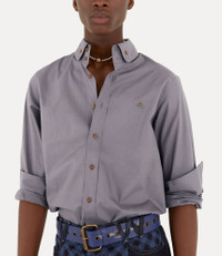 Made of organic certified cotton poplin sourced from farms that take a regenerative approach, the Krall shirt is detailed with a stately two button collar and features our orb embroidered in multicoloured thread on the chest. Code: 24010005-W00R7--GREY - Long-sleeved silhouette - Front-button fastening - Slightly curved hemline - Single-buttoned barrel cuffs - Model is 6'1.5/187cm and wearing a size 48 COMPOSITION - 100% Organic cotton - This fabric contains organic cotton. Organic fibres are natural fibres grown without the use of synthetic pesticides, insecticides, or herbicides and GMOs (Genetic Modified Organisms). We are committed to using certified organic cotton as organic farming systems avoid the risks that hazardous chemicals pose to human health and the environment. They can be more financially resilient for farmers, as well as helping to replenish and maintain healthy fertile soil.