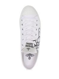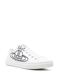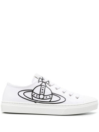 Orb-print canvas sneakers Vivienne Westwood leaves its unmistakable mark on these canvas sneakers. Rendered in a white and black colourway, their sleek silhouette is adorned with the brand's signature Orb print to the side for a recognisable finish. Highlights - White/black - Canvas - Signature orb logo print - Round toe - Front lace-up fastening - Logo patch at the tongue - Branded insole - Flat rubber sole Imported Composition Outer: Fabric 100% Sole: Rubber 100% Lining: Fabric 100% SIZE & FIT Measurement HEEL 1.18 in(3 cm) Sole height 0.98 in(2.5 cm)