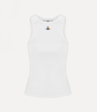 Our 90s vest features a cotton-blend silhouette, complete with an all-over ribbed finish. As part of our new range, the piece receives a multicoloured orb embroidery under the scoop neckline, synonymous with Vivienne's vision of launching tradition into the future. Code: 1G01000P-J0093--WHITE - Features a sleeveless silhouette - Slight stretch - Fitted shape - Fits true to size - Woven label at the neckline COMPOSITION - 95% Cotton - 5% Elastane