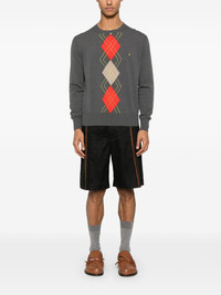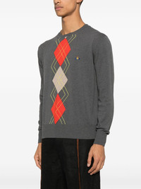 argyle-pattern round-neck sweater Highlights - Anthracite grey - Long sleeves - Ribbed cuffs and hem - Signature orb logo embroidery Made in Italy Composition Cotton 98%, Wool 2% SIZE & FIT Model measurements Height 6 ft 2 in(1.87 m) Bust/Chest 38.18 in(97 cm) Hips 36.61 in(93 cm) Waist 29.13 in(74 cm) FittingInformation Designed for a relaxed fit, this piece allows for comfort and movement when worn The ribbed hem offers a close, comfortable fit Made with a midweight knit, this piece offers some stretch