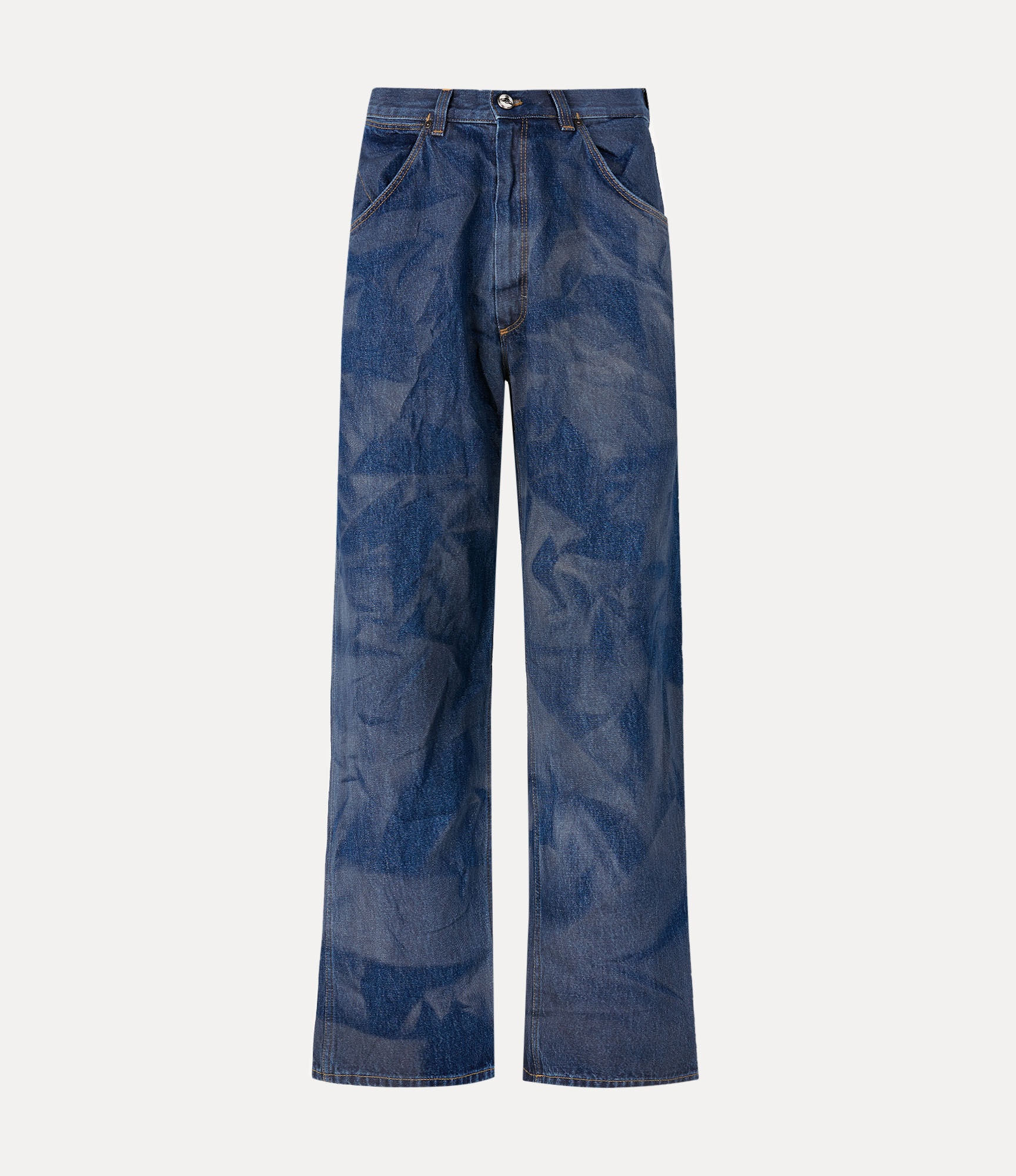This season, we've reimagined the orb motif on our Baggy jeans, now with the newly designed orb-engraved metal buttons. The jeans feature a straight-leg fit and are crafted from sprayed denim, speckled with reflective pigment that evokes both the dusty landscape and the silver shoes from the Wizard of Oz. Code: 3902000P-W014L--BLUE - Features a straight-leg fit - Oversized fit - Reflective style - Belt loops - Unisex - Side pockets - Woven label detail COMPOSITION - 100% Cotton