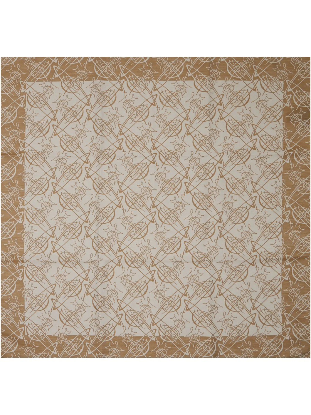 Square plain-woven silk- and cotton-blend scarf. · Jacquard logo graphic pattern throughout · Stripe at edges · H26.5" x W26.5" Supplier color: Beige 53% silk, 47% cotton. Made in Italy 261314M150009