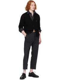 Lightweight knit merino wool- and cashmere-blend cardigan. · Rib-knit Y-neck and cuffs · Button closure · Logo embroidered at chest · Patch pockets · Vented side seams · Stripe at dropped shoulders and cuffs Supplier color: Black