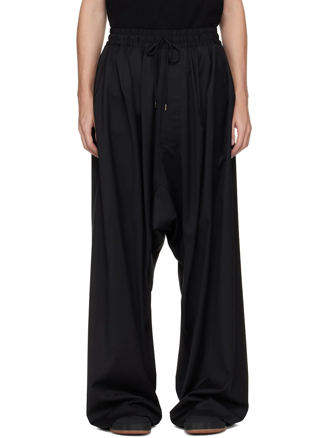 Virgin wool twill trousers. · Wide-leg · High-rise · Drawstring at elasticized waistband · Four-pocket styling · Button fly · Gusset at dropped inseam Supplier color: Black Body: 100% virgin wool. Trim: 100% cotton. Made in Italy 252314M191006