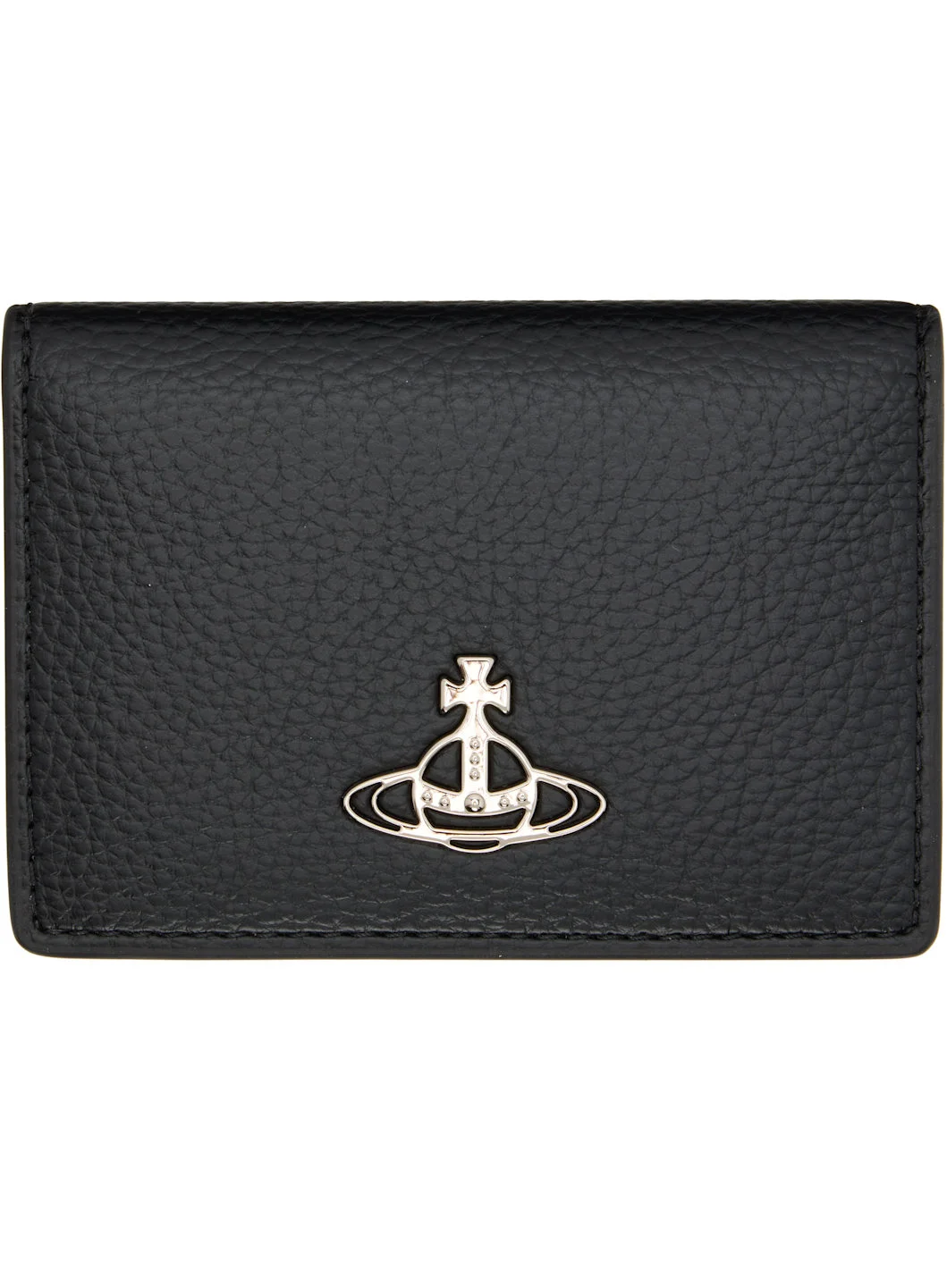 Grained faux-leather bifold card holder. · Logo hardware at face · Card slot at back face · Two card slots and ID slot at interior · Twill lining · H3" x W4.25" x D0.5" Supplier color: Black Synthetic. Made in Italy 252314M163085