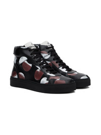 High-top buffed leather sneakers in black. · Logo graphic polka dot pattern printed throughout · Lace-up closure · Logo patch at tongue · Padded collar · Logo embossed at heel · Treaded rubber sole Supplier color: Dots Upper: leather. Sole: rubber. Made in Italy 241314M236004
