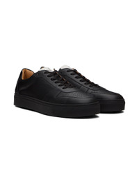 Low-top buffed calfskin sneakers in black. · Perforated detailing at toe · Lace-up closure · Logo patch at tongue · Padded collar · Perforated logo at heel counter · Buffed calfskin lining · Treaded rubber sole Supplier color: Black Upper: calfskin. Sole: rubber. Made in Italy 242314M237003