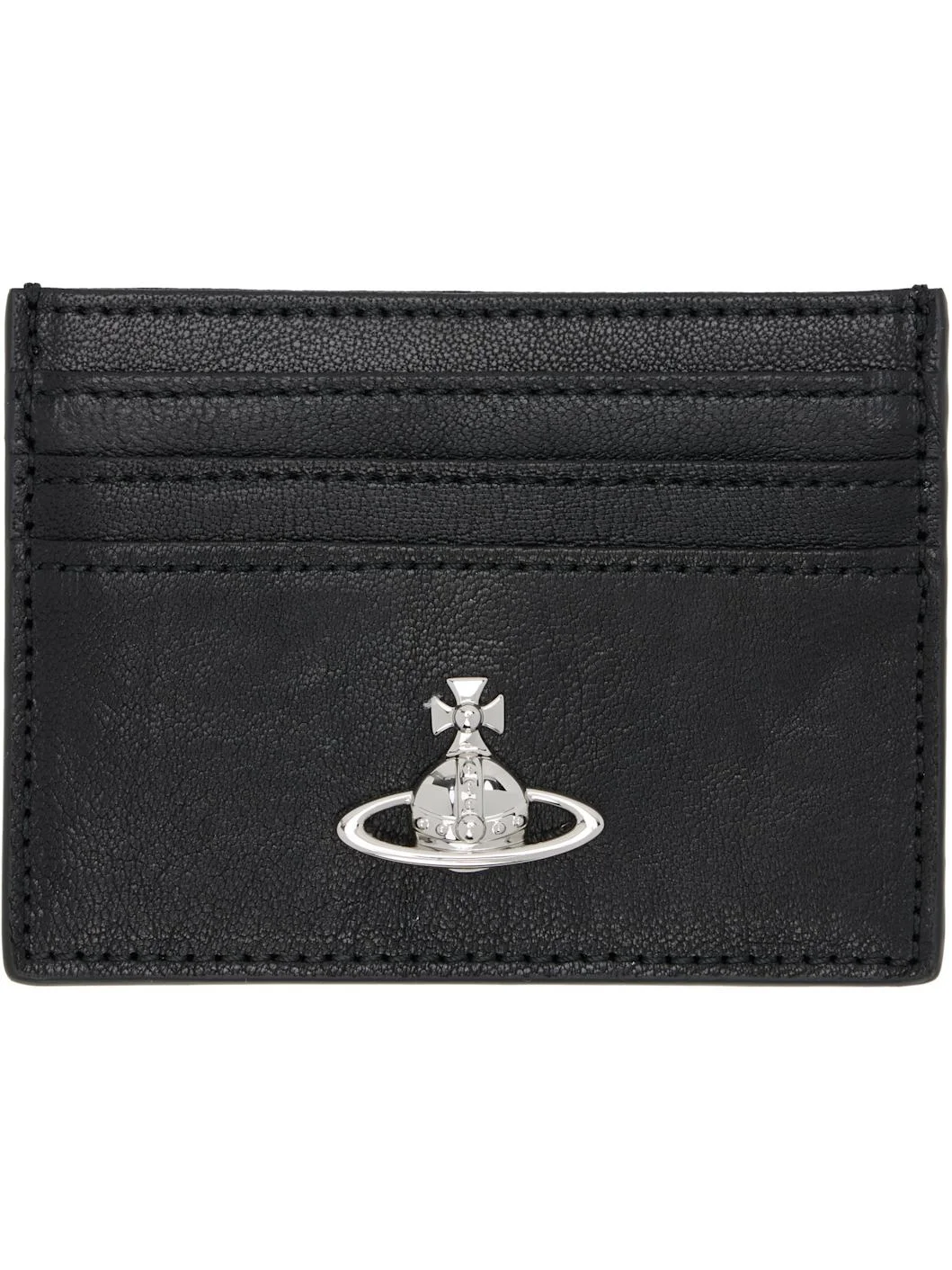Grained sheepskin card holder. · Logo hardware at face · Four card slots · Central note slot · Twill lining · Silver-tone hardware · H3" x W4" Supplier color: Black Sheepskin. Made in Italy 252314M163050