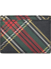 Saffiano faux-leather card holder. · Check pattern throughout · Logo hardware at face · Four card slots · Central note slot · Patterned textile lining · H3" x W4" Supplier color: Chelsea Tartan Synthetic. Made in Italy 252314M163046