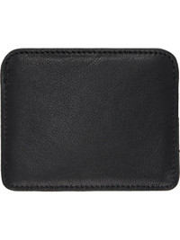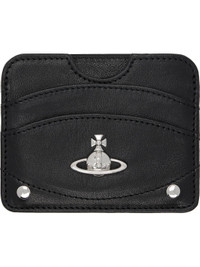 Grained sheepskin card holder. · Logo hardware and rivets at face · Two card slots · Central note slot · Twill lining · Silver-tone hardware · H3.25" x W4" Supplier color: Black Sheepskin. Made in Italy 252314M163051