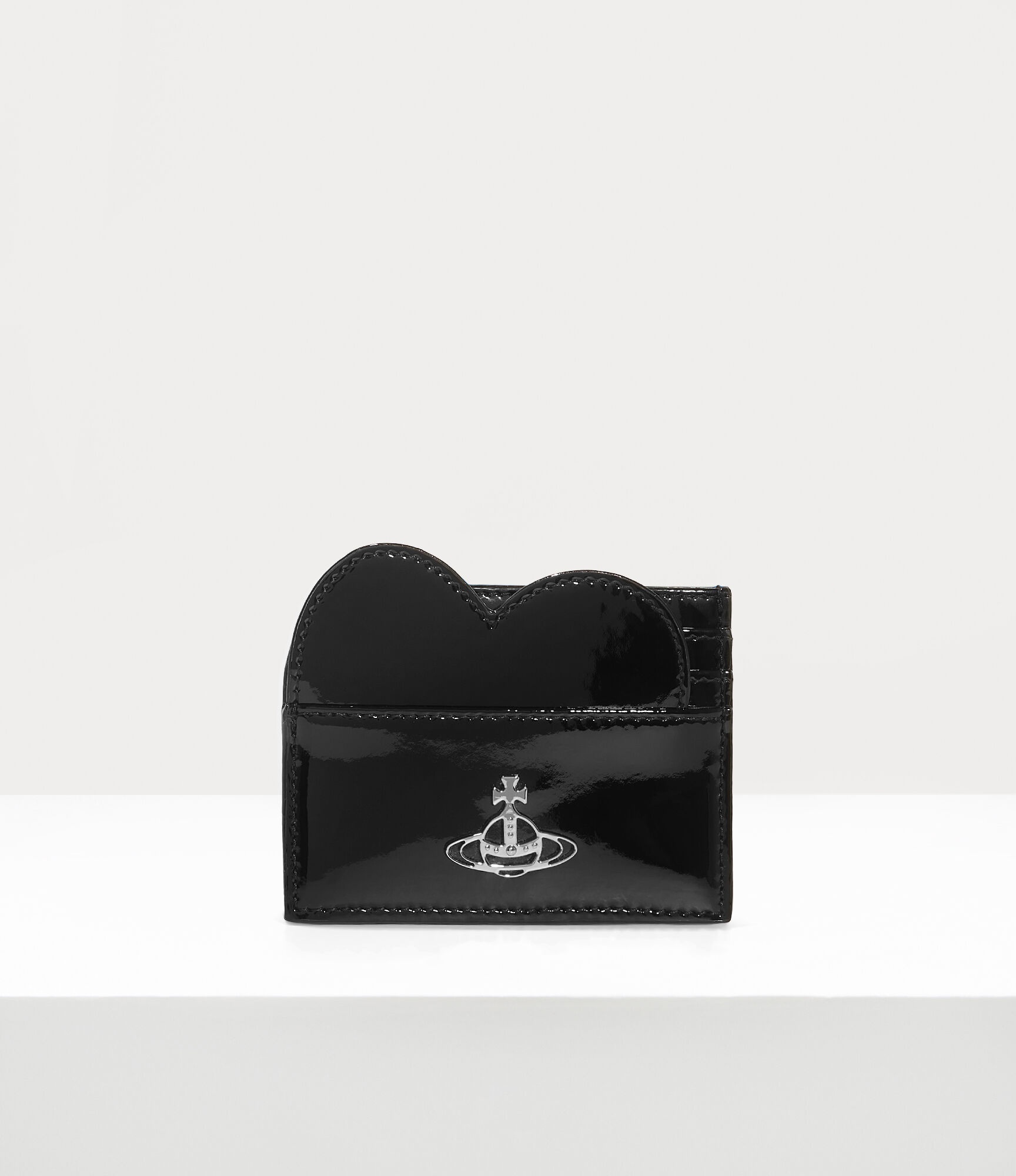 The asymmetric heart shape remains an essential element of the house's iconography, which Vivienne used to evoke an affection for both humanity and the planet. This season's Heart card holder adopts the asymmetric heart silhouette, along with a patent leather finish - reminiscent of the liquid latex sold in our iconic Sex boutique. Code: 8050889912545 - Four card slots - Internal compartment - Line orb stud - Tonal stitching - Rectangular silhouette - Made in Italy - Measurements: height 8.5cm, width 10cm, depth 1cm COMPOSITION - 100% Leather