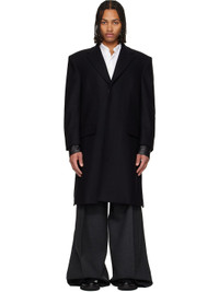 Wool- and cashmere-blend melton coat. · Notched lapel · Button closure · Flap pockets at waist · Padded shoulders · Inset taffeta buttoned barrel cuffs · Central vent at back hem · Welt pocket at interior · Full logo-woven satin lining Supplier color: Black Body: 95% wool, 5% cashmere. Trim 1: 100% polyester. Trim 2: 100% cotton. Lining: 100% viscose. Made in Italy 252314M176001