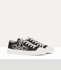 Our Low-top Canvas plimsolls features the house's archival 'Line Orb' motif across the design - synonymous with Vivienne's vision of launching tradition into the future. The piece offers a cotton canvas finish, adorned with a woven label on the tongue. Code: 75020005M-W015B--BLACK - Features a low-top design - Fits true to size, please take normal size - Lace-up fastening - Top cap - Tonal stitching - Rounded toe shape - Contrasting stitching - Flat sole COMPOSITION - Upper: 100% cotton - Sole: rubber