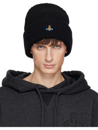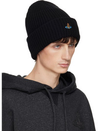 Rib-knit wool beanie. Logo embroidered at rolled brim. Supplier color: Black 100% wool. Made in Italy 252314M138006