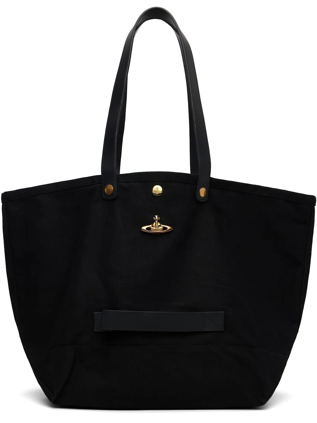 Cotton canvas tote. · Fixed shoulder straps · Logo hardware and fixed loop at face · Press-stud closure · Patch pocket at interior · Cotton twill lining · H14.5" x W21.5" x D10" Part of the Made in Kenya collection in collaboration with Artisan Fashion of the ITC Ethical Fashion Initiative. Supplier color: Black 100% cotton. Made in Kenya 251314M172000