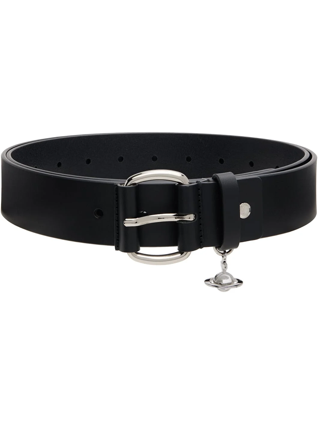 Wraparound buffed leather belt. · Logo charm with crystal at keeper loop · Printed logo at length · Logo-engraved pin-buckle fastening · Silver-tone hardware · W0.75" Supplier color: Black Leather. Made in Italy 252314M131004