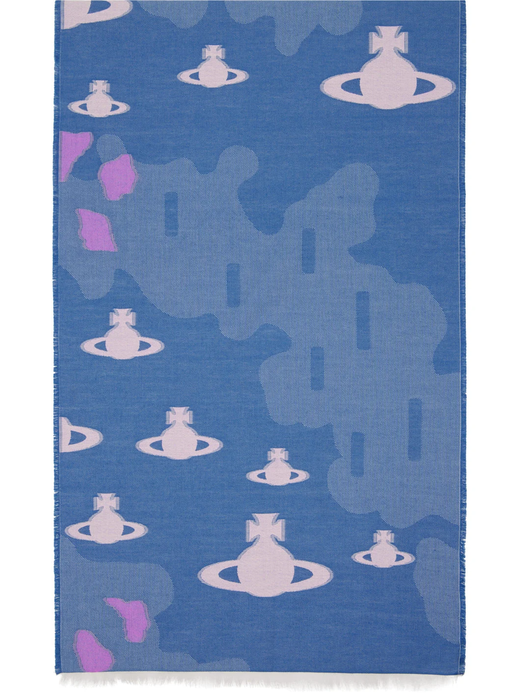 Rectangular cotton flannel scarf. · Jacquard logo pattern throughout · Fringed detailing at ends · L68" x W14" Supplier color: Avio 100% cotton. Made in Italy 261314M150007
