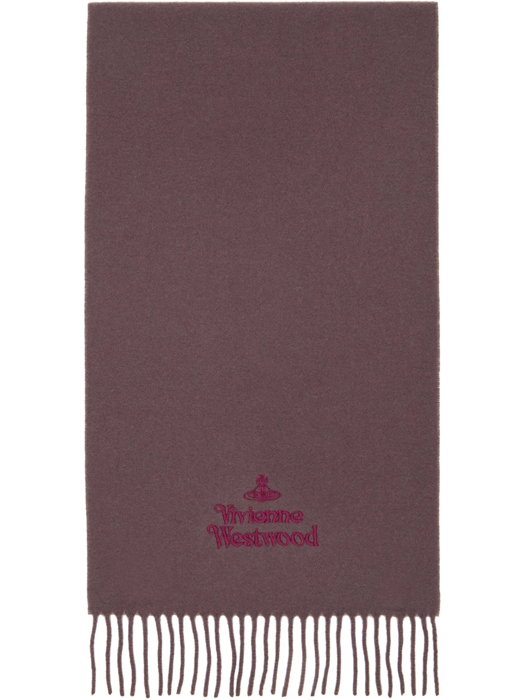 Rectangular wool flannel scarf. · Logo embroidered at face · Fringed detailing at ends · L71" x W12" Supplier color: Brown 100% wool. Made in Italy 252314M150016
