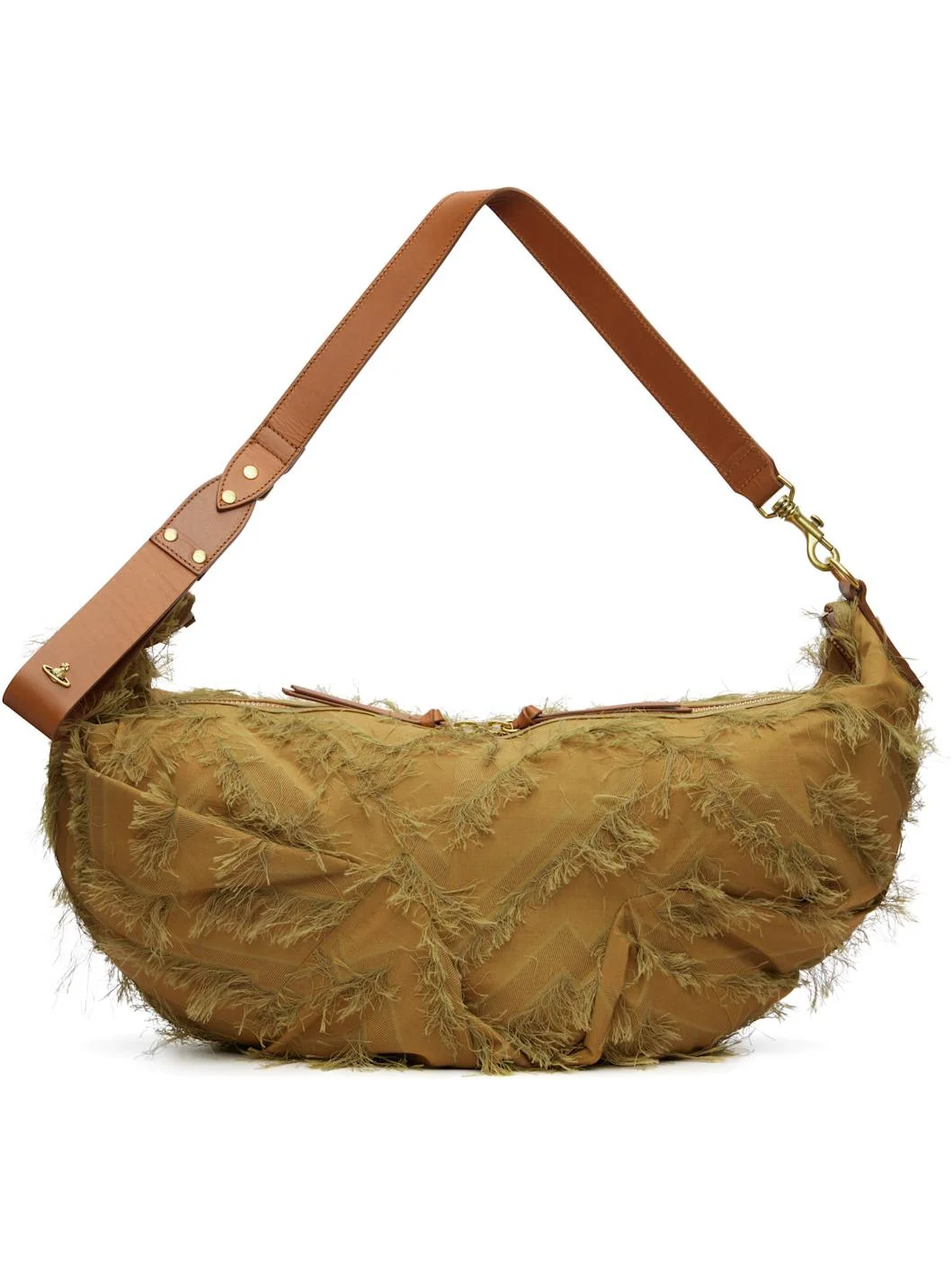 Brown Fringes Fil Coupe' Agnes Large Shoulder Bag
