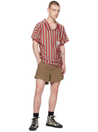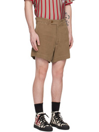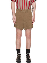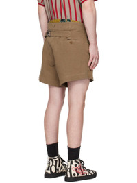 Linen hopsack shorts. · Partially elasticized waistband · Belt loops · Three-pocket styling · Zip-fly · Cinch strap at back Supplier color: Brown Body: 100% linen. Trim: 100% polyester. Made in Italy 231314M193006
